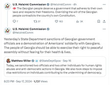 In a statement, the commission said: "The sanctions imposed yesterday by the State Department on representatives of the Georgian government are a clear show of American solidarity with the Georgian people. The citizens of Georgia should be able to exercise their right to peaceful assembly without fear for their health and safety. The Georgian people deserve a government that upholds its own laws and respects their freedoms. Acting against the will of the Georgian people contradicts the nation's constitution."