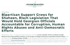 U.S. Senators Jeanne Shaheen and Jim Risch are rallying bipartisan support for their Georgian People's Act, aimed at holding Georgian officials accountable for corruption, human rights abuses, and anti-democratic actions.