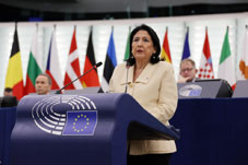 Georgian President Salome Zourabichvili delivered a speech, addressing the European Parliament, calling on Europe to intensify its support for Georgia amid rising political tensions and civic unrest.