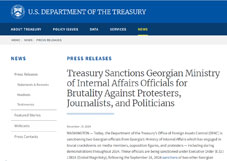 The U.S. Department of the Treasury announced sanctions against two senior officials in Georgia's Ministry of Internal Affairs over allegations of serious human rights abuses.