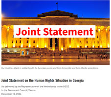 A joint statement was delivered at the OSCE Permanent Council in Vienna by the representative of the Netherlands, on behalf of 20 countries, including the United States, United Kingdom, and several European nations.