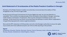 "This is another worrying example of the intimidation of journalists in Georgia, restricting media freedom and freedom of expression," the statement reads.