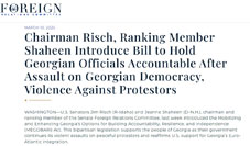 U.S. Senators Jim Risch (R-Idaho) and Jeanne Shaheen (D-N.H.), chairman and ranking member of the Senate Foreign Relations Committee, have introduced the Mobilizing and Enhancing Georgia's Options for Building Accountability, Resilience, and Independence (MEGOBARI) Act.