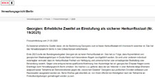 A Berlin court has ruled against the German government's rejection of two Georgian asylum applications, challenging the classification of Georgia as a "safe country of origin."