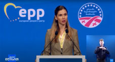 At the European People's Party (EPP) Congress, Tina Bokuchava, Chairwoman of Unity - National Movement, delivered a speech condemning "Kremlin-backed repression" in Georgia and calling for targeted European sanctions against Bidzina Ivanishvili and his allies.