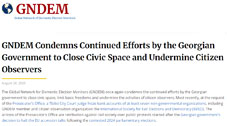 The Global Network for Domestic Election Monitors (GNDEM) has condemned the freezing of bank accounts of seven Georgian non-governmental organizations, including its member group ISFED, saying the move is part of a wider campaign to restrict civic space and undermine citizen election observers.