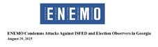 The European Network of Election Monitoring Organizations (ENEMO) has strongly criticized the freezing of bank accounts belonging to the International Society for Fair Elections and Democracy (ISFED), one of Georgia's most prominent election watchdog groups.
