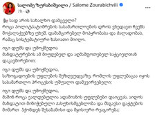 Writing on social media, Zourabichvili said the Public Defender has been "silent and inactive" while court bailiffs allegedly mistreat attendees and restrict public access to trials. "He is obliged to protect human rights, assume the responsibility assigned by the mandate, and respond immediately to such facts," she wrote.