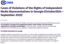 The Center for Media, Information and Social Research (CMIS) says it documented 434 violations against journalists, media outlets, and media rights organizations in Georgia between October 2024 and September 2025.