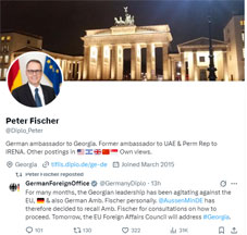 Berlin has recalled its ambassador to Georgia, Peter Fischer, for consultations, citing repeated verbal attacks from Georgian Dream leaders against the European Union, Germany, and the diplomat himself. The German Foreign Office said that the decision was prompted by months of "agitating" directed at Fischer and the country's wider European ties.