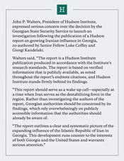 "Rather than launching an investigation against the authors of the report, the authorities should be concerned about the findings, which overwhelmingly rely on publicly accessible information that the authorities should already be aware of. The report outlines a clear and systematic picture of the expanding influence of the Islamic Republic of Iran in Georgia. These developments run counter to the interests of both Georgia and the United States and warrant serious attention," Walters noted.